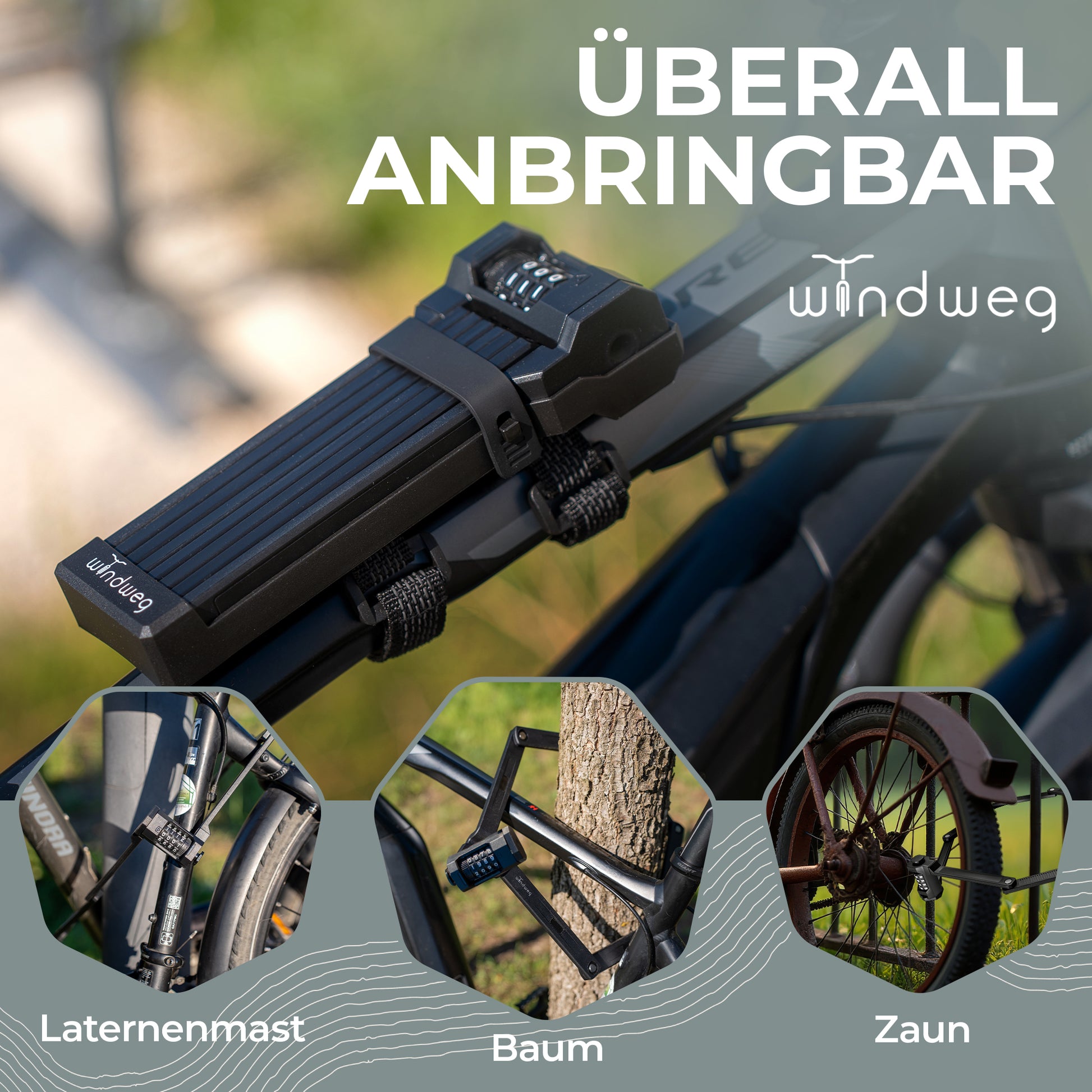 Windweg Faltschloss – kompakt, robust und perfekt für Citybikes, E-Bikes & MTB.